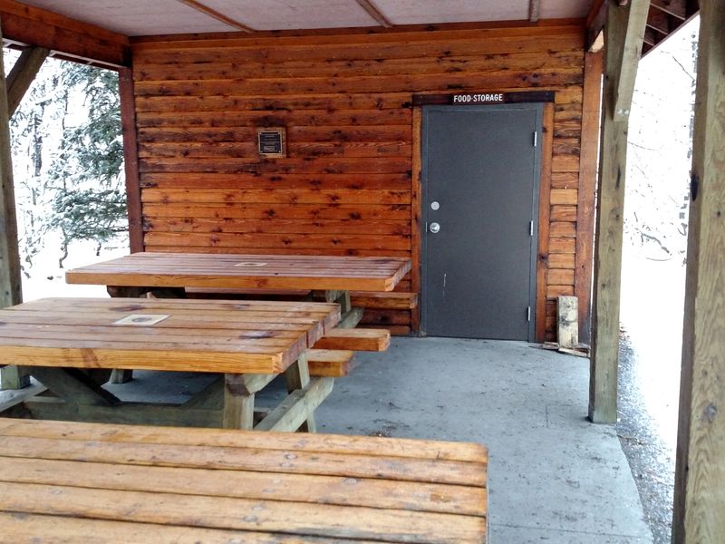 Exit Glacier Campground is a 12-site walk-in tent-only campground situated in the Exit Glacier area of Kenai Fjords National Park, the only part of the park accessible by road. Located approximately 8 miles from the Seward Highway on Herman Leirer Road (Exit Glacier Road), the campground provides a primitive camping experience with no fees and no reservations. Sites are available first-come, first-served, with a 14-day stay limit and accommodate up to two tents and eight people per site. The campground features a central food storage, cooking, and dining shelter where all food preparation and storage must occur. Cooking or storing food at individual campsites is strictly prohibited due to bear activity in the area. A seasonal water pump provides drinking water, and vault toilets are available year-round. Two sites (#1 and #12) are accessible with wide, level access paths. Fires are limited to steel fire rings at the campground cooking shelter. The road to Exit Glacier closes to vehicle traffic when snow arrives, typically from October through mid-May, though the area remains open for winter recreation. During summer months, the campground frequently fills by early evening in July and August. Pets are not permitted in the campsites, and RVs are not allowed.