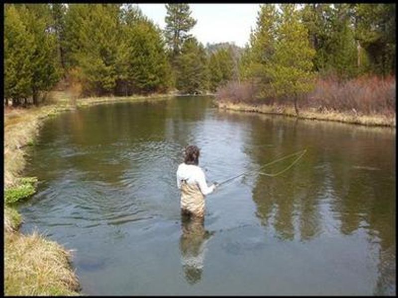 Fall River Guard Station is a rustic historic cabin situated on the banks of the spring-fed Fall River in Deschutes National Forest. Built by the Civilian Conservation Corps in the 1930s in the Cascadia architectural style typical of the Pacific Northwest Region, this single-story structure originally served as an outpost for fighting forest fires. The 600-square-foot cabin features two bedrooms, a kitchen, and living room, accommodating up to 5 guests with one full bed, one twin bed, and a two-person futon. The cabin is equipped with propane-powered amenities including heat, refrigerator, lights, and stove. A picnic table is provided for outdoor dining, and a vault toilet is located on the premises. Guests must bring their own water, as none is available on-site, along with sleeping bags or bedding, towels, food, and cooking utensils. For the 2025 season, no kitchenware is provided. The location offers exceptional recreational opportunities. Fall River, flowing adjacent to the cabin, is open exclusively to fly-fishing and hosts brook, brown, and rainbow trout, as well as native whitefish below the falls. The Fall River Trail is accessible from the guard station, winding through lodgepole and ponderosa pine forests along the river. The surrounding landscape showcases the volcanic geology and diverse ecosystems of central Oregon, with nearby attractions including the Cascade Lakes Scenic Byway, Newberry National Volcanic Monument, and Lava Lands Visitor Center in Bend.