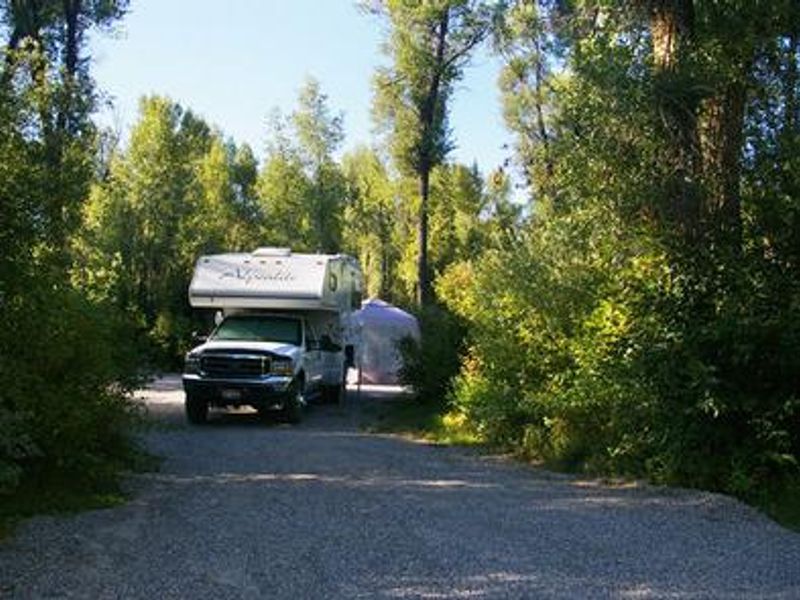 Falls Campground occupies a scenic location next to the Snake River in beautiful Swan Valley, 45 miles east of Idaho Falls. Situated at an elevation of 5,100 feet, the campground is nestled among cottonwood trees that provide partial shade, with grassy meadows and summer wildflowers dotting the landscape. The campground offers 24 single sites and one group site that can accommodate up to 150 people. Wildlife is abundant in the river bottom, with eagles, osprey, moose, and deer frequently spotted. Fall Creek Falls, a spectacular 60-foot cascade dropping over a travertine outcropping, is less than a quarter mile from the campground and visible from some campsites. The Snake River offers excellent cutthroat trout fishing along with canoeing, floating, rafting, and kayaking opportunities. Conant Boat Ramp is nearby and open to the public. Palisades Reservoir is less than 20 miles away, offering additional opportunities for boating, water skiing, canoeing, fishing, and swimming. The Fall Creek area has numerous trails for hiking, mountain biking, horseback riding, and ATV riding, though ATVs and ORVs are not permitted in the campground itself. The campground was built by the Civilian Conservation Corps in the late 1930s and is accessed via a 3.5-mile gravel road off Highway 26.