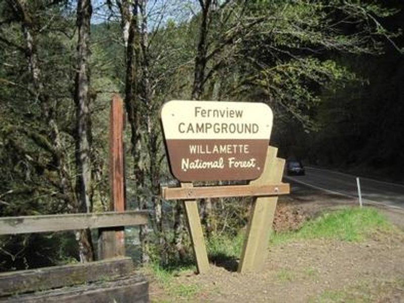 Fernview Group Site sits at 1,360 feet elevation on a scenic bench overlooking the South Santiam River, approximately 22 miles east of Sweet Home on Highway 20. Originally a standard campground, it has been converted to a group area operated by Linn County Parks & Recreation on behalf of the Willamette National Forest. The site contains 11 individual campsites, two of which are tent-only, with some sites accommodating trailers up to 22 feet in length. The facility can host groups of up to 75 people. The campground features a single accessible vault toilet and a hand pump providing potable water near the entrance and picnic area. Each original campsite includes a picnic table and firepit. River access from the campground can be challenging but is available nearby via a short walk or drive. Fernview serves as an excellent base for exploring the surrounding Willamette National Forest. The Rooster Rock Trail lies directly across Highway 20, providing access to Rooster Rock within the Menagerie Wilderness. The Santiam Wagon Road trail system is just 10 minutes away, offering over 20 miles of hiking, biking, and horseback riding opportunities. Iron Mountain, located 10 miles east, is renowned for over 300 species of wildflowers, with early July being peak viewing season. Additional nearby attractions include Crescent Mountain, House Rock Falls, Browder Ridge, and the Middle Santiam Wilderness, all within a 45-minute drive.