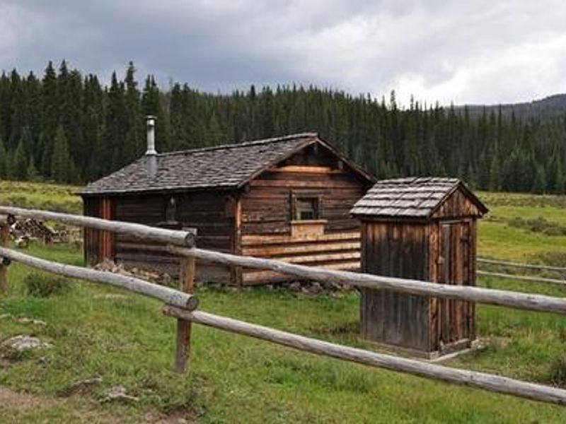 Fitton Guard Station Cabin sits in a scenic high-elevation meadow at 10,600 feet on Burro Creek within the Rio Grande National Forest. This small, renovated historic cabin provides rustic accommodations for up to four people with two bunk beds, a wood-burning cook stove, table, chairs, and a small covered porch. A vault toilet and barn for horses complete the facilities. Visitors must bring their own water or treat natural sources, and firewood can be gathered nearby. The cabin is accessed via a combination lock provided upon reservation confirmation. Access to the cabin is part of the adventure, requiring a 50-inch-width or narrower off-highway vehicle or non-motorized travel by foot or horseback. The cabin is located 6 miles upstream from the lower Burro Creek Trailhead (accessed 12 miles south of Del Norte on County Road 14) or 1.5 miles from the upper trailhead (28 miles from Del Norte via Forest Service Roads 329 and 329.1C). During winter months, access becomes more challenging with potential 6-mile hikes or snowmobile travel. The surrounding landscape features meadows, aspen groves, and spruce-fir forests, with Bennett Peak rising to 13,200 feet to the southeast. The area connects to extensive OHV trail systems used by motorcycles, mountain bikes, hikers, and horseback riders in summer, and snowmobilers and backcountry skiers in winter. Off Cow Camp Cabin, another rental facility, is located 400 yards downstream. Bears frequent the area, requiring proper food storage. Maximum stay is 14 days.
