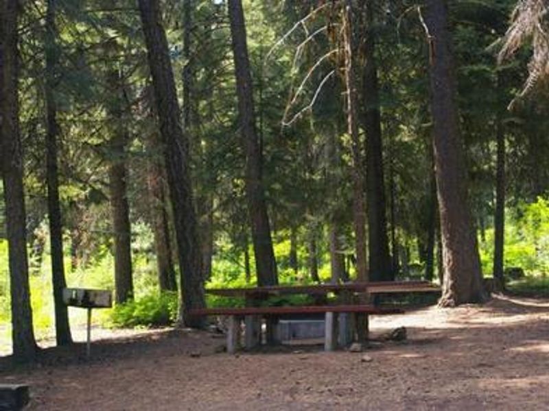French Creek Campground is situated on the western shore of Lake Cascade in west-central Idaho's Boise National Forest, near the town of Donnelly at an elevation of 4,850 feet. The campground is divided into two sections along West Mountain Road, with sites on the east side closer to the lakeshore offering beautiful lake views, while sites on the west side sit on a hillside above the lake with partial views. A forest of mixed conifers covers the campground, providing ample shade, and thimbleberry and huckleberry plants grow throughout the upper reaches. Lake Cascade offers excellent opportunities for boating, water skiing, canoeing, windsurfing, and sailing. Anglers can cast for rainbow trout, coho salmon, smallmouth bass, and perch. The campground sits on the banks of French Creek where it meets the lake. A wide variety of wildlife makes its home around the lake, including waterfowl, songbirds, pelicans, and bald eagles. Many hiking and biking trails are accessible in the surrounding area, making this a popular destination for summer recreation.
