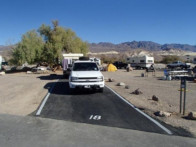 Furnace Creek Campground is the premier camping destination in Death Valley National Park and the only NPS campground that accepts reservations. Located at 190 feet below sea level on the valley floor, it offers 136 campsites including 18 full hookup sites with electric, water, and sewer connections. The campground provides modern amenities including flush toilets, drinking water at each site, picnic tables, fire rings or grills, and a dump station. Sites range from standard RV/tent sites to tent-only drive-in sites and walk-in tent areas, with some sites offering shade from sparse vegetation. The terrain is fairly open and exposed, typical of Death Valley's harsh desert environment. Despite the extreme setting, the campground offers spectacular mountain views to the east and west, with stunning sunrises and sunsets. The facility is staffed during peak season with rangers and campground hosts available to assist visitors. A one-mile bike path leads to the historic Harmony Borax Works, and the Furnace Creek Visitor Center is just a short walk away. Birders can find opportunities along Airport Road, especially during cooler months. Death Valley is a land of extremes, holding the record as the hottest, driest, and lowest location in North America. Yet this below-sea-level basin supports surprising biodiversity, from wildflower blooms after rare rains to wildlife adapted to harsh conditions. The park encompasses over 3.4 million acres with colorful badlands, snow-covered peaks, sand dunes, rugged canyons, and vast playas waiting to be explored.