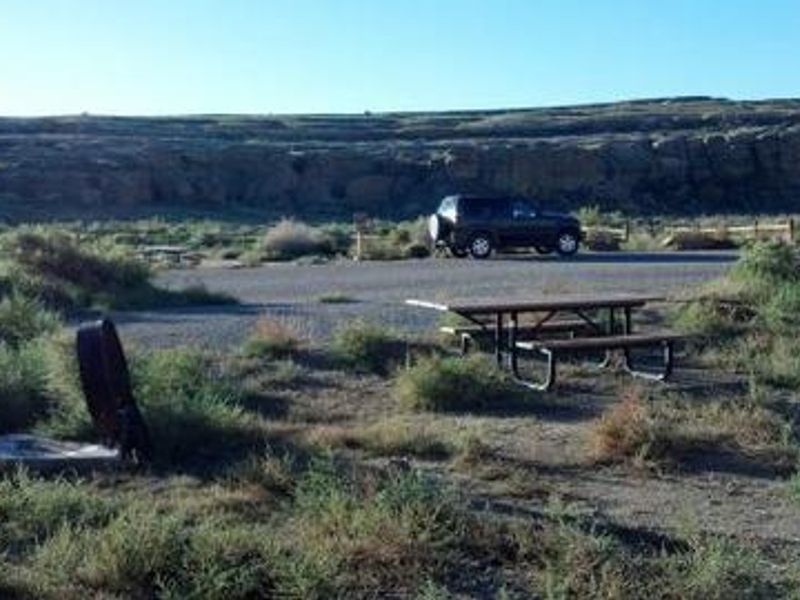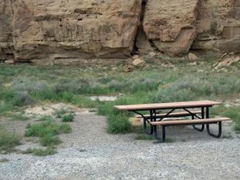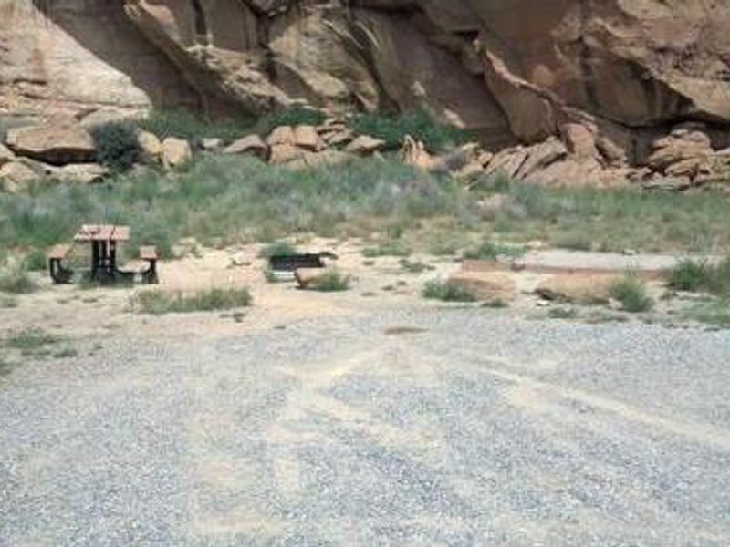 Gallo Campground is located within Chaco Culture National Historical Park, a UNESCO World Heritage Site preserving the monumental structures of the ancestral Pueblo people. The campground sits in a rugged desert setting among the fallen boulders and cliffs of Gallo Wash, surrounded by ancient petroglyphs, cliff dwellings, and historical inscriptions that tell the story of this once-thriving regional center from 850 to 1250 CE. The campground features 24 individual sites and 2 group sites, with 20 sites available for advance reservation through Recreation.gov and 4 first-come, first-served sites. Several sites can accommodate RVs up to 42 feet, though no hookups are available. Site 11 is ADA accessible and held until 4:00 PM daily for those needing accessible accommodations. Each site includes a picnic table and fire grate with grill. Located one mile east of the visitor center, the campground provides access to six frontcountry and four backcountry hiking trails leading to ancient cultural sites along the canyon loop road. The remote high desert environment offers no natural shade or services, so visitors must come prepared with ample water, food, sunscreen, and appropriate clothing for both hot days and cold nights. The park is accessed via unpaved roads that can become impassable during wet weather.