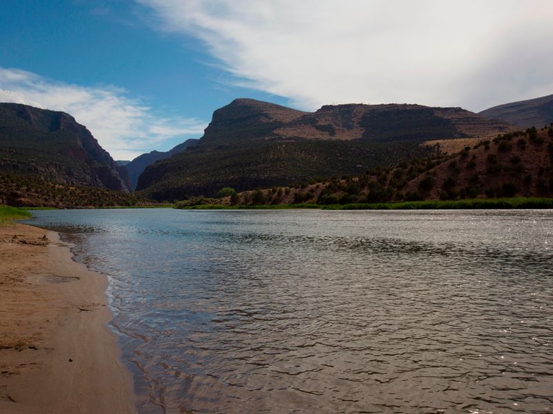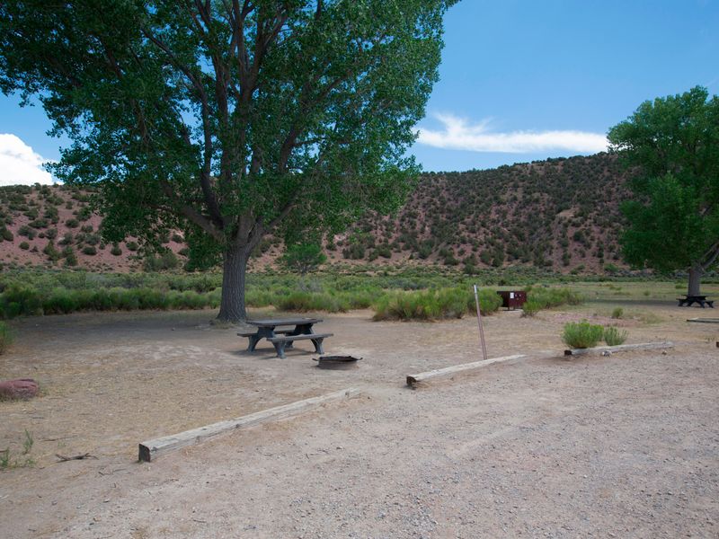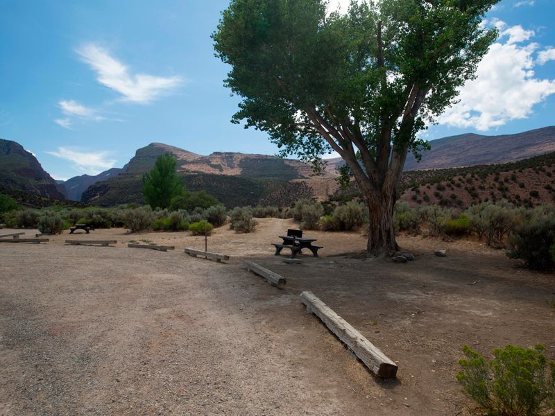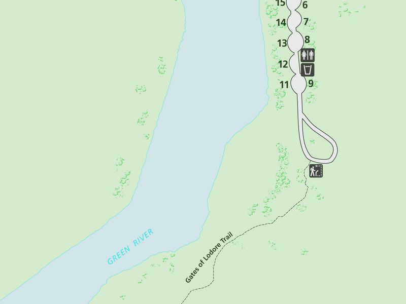 Gates of Lodore Campground occupies a remote location on the Green River at the northern end of Dinosaur National Monument, where the river enters the steep-walled Canyon of Lodore. The campground's isolation is part of its appeal, situated 106 miles north of the Canyon Visitor Center and 137 miles from the Quarry Visitor Center. A short trail from the campground provides scenic views of the river as it slices into the mountains and enters the canyon gates. The campground features 19 first-come, first-served sites, all pull-throughs that can accommodate RVs up to 25 feet, with some sites able to handle larger rigs. Sites include picnic tables and either fire pits or grills, with some offering shade. The campground is particularly popular with whitewater rafters who stay here before launching multi-day trips through Lodore Canyon on the Green River. Amenities include vault toilets available year-round and seasonal running water during summer months. There are no hookups, dump stations, showers, or facilities for filling RV water tanks anywhere in the monument. The campground operates on a scan-and-pay system with no reservations accepted. Winter access can be difficult due to snow and road conditions at this high-elevation location in remote northwest Colorado.