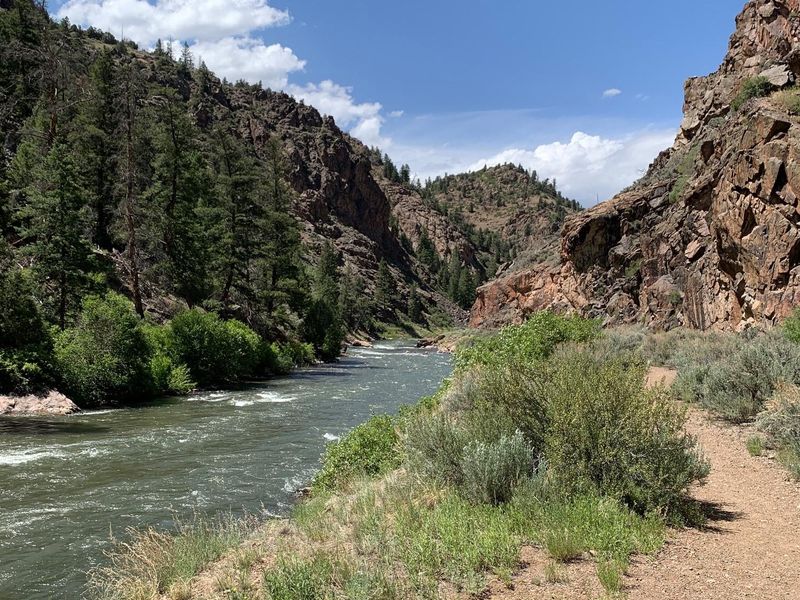 From Powderhorn, travel 7 miles west on CO Highway 149, then turn north onto Blue Mesa Cutoff Road (CR-25) and continue 6 miles on narrow gravel road to the campground.