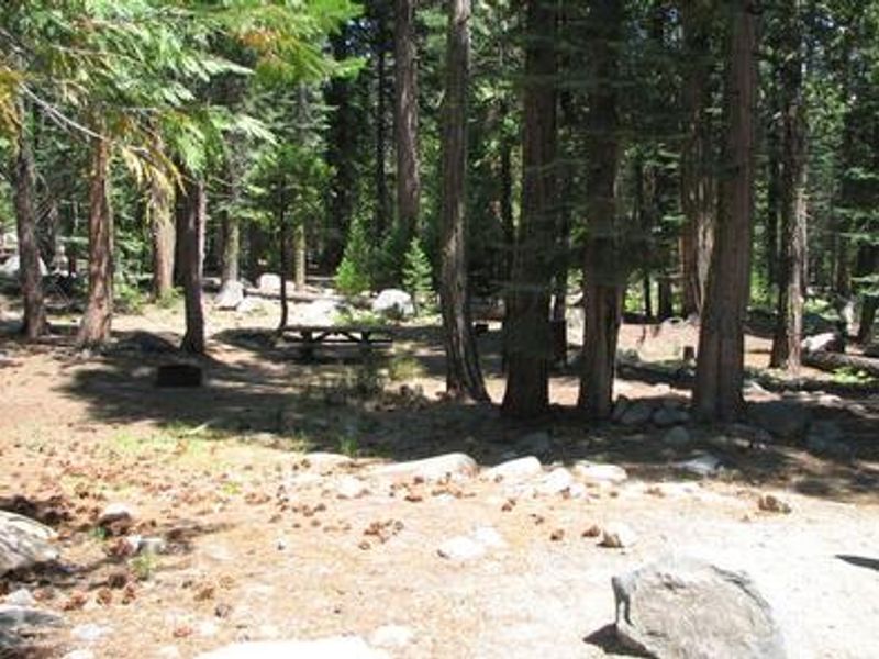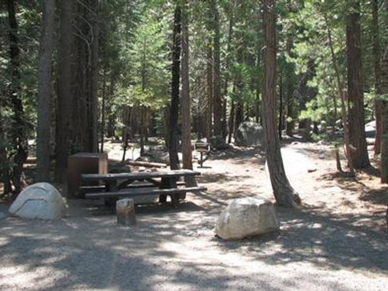 Gerle Creek Campground is nestled on the banks of the Gerle Creek Fork among a lush forest of hardwoods at 5,300 feet elevation in the Eldorado National Forest. The campground features 50 sites, with 31 designated for tents only and 19 sites that can accommodate RVs, trailers, and tents. Some sites are large enough for 50-foot rigs, and several are ADA accessible. The area was named for two brothers who were early settlers and farmers in the region. Gerle Creek flows into the Gerle Creek Divide Reservoir, where no motorboats are allowed, making it an ideal location for quiet paddling, swimming, and fishing for brown and rainbow trout. An accessible fishing dock is located on-site, and the fully accessible Gerle Creek Interpretive Trail provides scenic views and educational displays. The campground provides vault toilets, potable water, bear boxes, fire rings, picnic tables, and an on-site host. Union Valley Reservoir and Loon Lake are within a short drive, offering additional fishing and boating opportunities. Eldorado National Forest boasts over 400 miles of hiking trails and a Mediterranean-like climate with warm, dry summers and cold, wet winters.