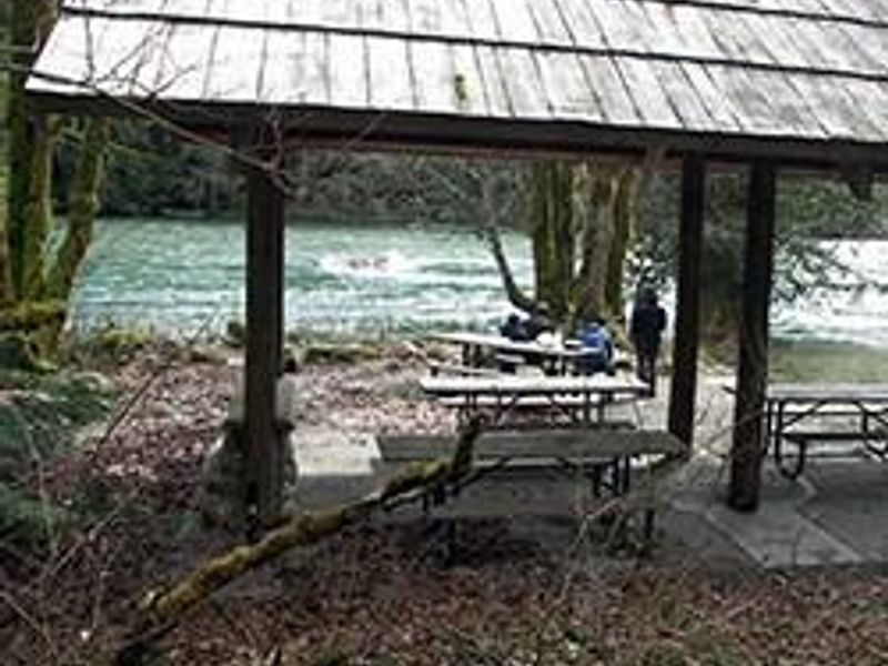 Goodell Creek Campground is a small, peaceful campground situated in lush old growth forest on the banks of the Skagit River, just off State Route 20 near the town of Newhalem. The campground features 19 individual campsites surrounded by western redcedar, western hemlock, Douglas-fir, and native shrubs including wild red huckleberries. Sites are suitable for tents and small RVs or trailers up to 20 feet in length, with a maximum capacity of two vehicles, eight people, and three tents per site. During peak season from late May through early September, the campground requires reservations. Sites 1-13 can be reserved 6 months in advance, while sites 14-19 are available 7 days in advance. Any unreserved sites during peak season become available as same-day, first-come, first-served for one night only and must be claimed in person. Outside peak season, from January through late May and early September through December, all sites operate on a first-come, first-served basis. Recreational opportunities include fishing in Goodell Creek and the Skagit River, which is the largest river flowing into Puget Sound and provides critical habitat for all Pacific salmon species. A raft and kayak launch at the campground offers river access. Hikers can access several Newhalem area trails via a connecting path to Newhalem Campground. Black bears are active in the area, and all campsites are equipped with bear boxes for storing coolers, cookware, and other odorants. The North Cascades Visitor Center and the town of Newhalem with its general store are both within walking distance.