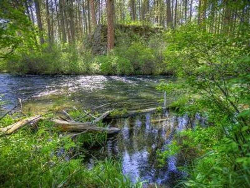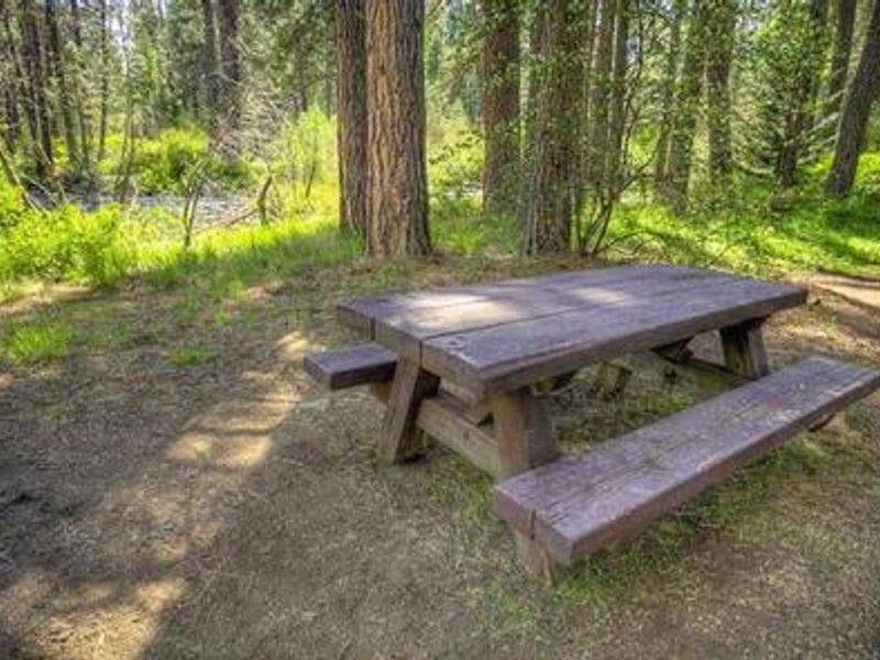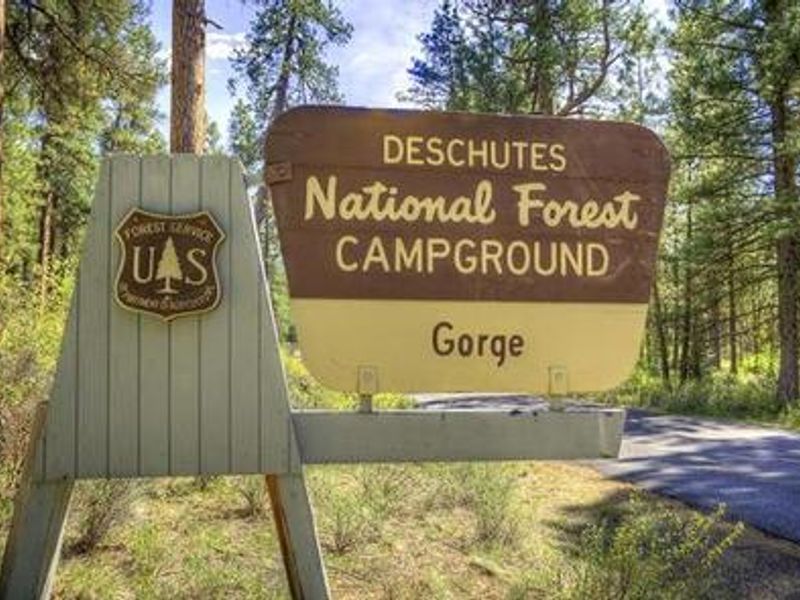 Gorge Campground is part of a chain of campgrounds dotting the upper portion of the Metolius River in Deschutes National Forest. Located approximately 3.8 miles downstream from the river's headwaters at Metolius Springs, the campground sits where the calm flow gets pinched by a basalt lava flow, creating a shallow gorge under a forest of ponderosa pines. The campground features 18 large, spacious sites that can accommodate RVs, trailers, or tents. The spring-fed Metolius River offers a stunning setting for fly-fishing in clear, cold water that supports rainbow trout, whitefish, bull trout, and kokanee salmon. For day hikers and backpackers, the area provides a wide variety of scenic terrain, ranging from riverside trails to routes in subalpine forests. The Metolius-Windigo Trail, open to hikers, bikers, and horses, is more than 100 miles in length and begins near the river's headwaters. The area provides habitat for mammals such as mule deer, coyote, and cougar, while migratory birds and native fish also call the region home. Nearby attractions include the Camp Sherman Fish Viewing Platform, Wizard Falls Fish Hatchery, and the unique geological landscape of Newberry National Volcanic Monument.