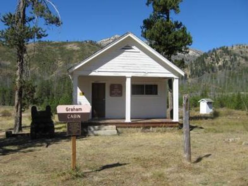 Graham Cabin is a former Forest Service Guard Station located on the North Fork Boise River at 5,720 feet elevation, directly adjacent to the Sawtooth Wilderness. This remote rental cabin sits in an open grassy area surrounded by the rugged mountain peaks of the Sawtooth Range dotted with evergreens, with some visible remnants of past forest fires. Access to the cabin requires commitment and proper equipment. The 53-mile route from Idaho City takes a minimum 3 hours by high clearance 4WD vehicle on extremely rocky, rutted roads with a mandatory river ford. Alternatively, visitors can fly into the adjacent airstrip, generally snow-free from late May to early October, or arrive on horseback via the 6-mile Horse Heaven Trail or by riding the last 10 miles of Road 312. The cabin sleeps 6 people and provides basic amenities; guests should bring additional supplies for a comfortable stay. Several trails within 2 miles offer superb horseback riding, including the Horse Heaven Trail. Hikers can follow the river to its headwaters in the Sawtooth Wilderness, while motorcyclists enjoy the surrounding roads. Fishing is good in both the river and nearby Johnson Creek. Big game hunting is popular in season. Wildlife watchers may spot elk, deer, mountain goats, wolves, coyotes, cougars, bobcats, bears, and occasionally wolverines.