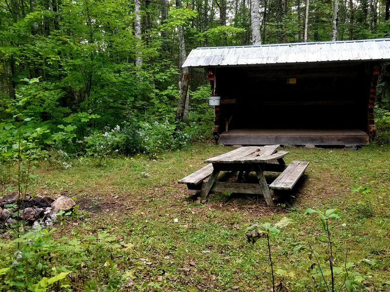 Located 3.6 miles south of Haskell Gate along the International Appalachian Trail. From the North Entrance, drive to Haskell Gate parking area, then hike south on the International Appalachian Trail. Alternatively, access by paddling the East Branch of the Penobscot River. No vehicle access to the lean-to itself.