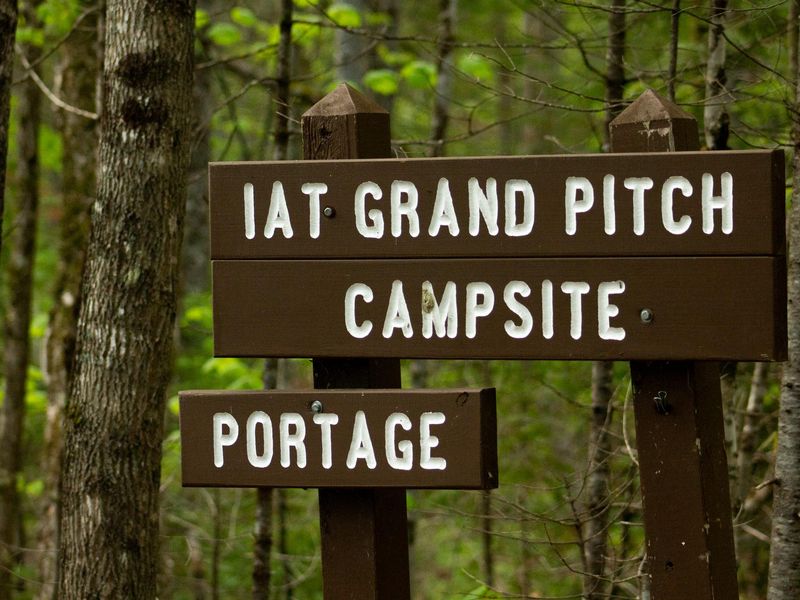 Grand Pitch Lean-to is a backcountry shelter located in Katahdin Woods and Waters National Monument along the East Branch Penobscot River. The lean-to is positioned near Grand Pitch, part of a dramatic series of waterfalls and rapids where the river drops over 200 feet in its first 10 miles through the monument. Access requires hiking or biking 3.6 miles south from Haskell Gate along the International Appalachian Trail, or paddling the East Branch of the Penobscot River. The shelter provides basic amenities including a picnic table, fire pit, and vault toilet, but no water source is available on site. This is true backcountry camping where visitors must be self-sufficient and follow Leave No Trace principles. All odorous items must be stored in bear-resistant canisters as no bear boxes are provided at this location. Campfires require a free permit from the Maine Forest Service, and out-of-state firewood is prohibited to protect against invasive species. The monument's roads are typically closed to motorized vehicles from mid-November through late May, making winter access possible only by foot, ski, or snowshoe. During the snow-free season, the area provides exceptional opportunities for paddlers, hikers, and backcountry enthusiasts seeking solitude in Maine's north woods. The monument is an International Dark Sky Sanctuary, offering exceptional stargazing opportunities.