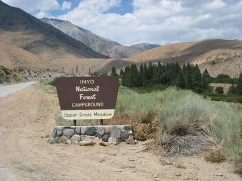 Grays Meadows Campground is situated along Independence Creek in the Onion Valley area of the eastern Sierra Nevada Mountains at 6,100 feet elevation. The campground consists of upper and lower sections totaling 52 campsites, with a mix of reservable sites and first-come, first-served options. Sites are set among oak and cottonwood groves, offering both sunny and shaded locations with a high-desert landscape backdrop. The campground's location makes it a popular hub for wilderness access, with the demanding Shepherd Pass Trail just west of the campground leading into the John Muir Wilderness. Independence Creek flows through the area and is regularly stocked with trophy-size rainbow trout, with an early fishing season beginning the first weekend in March. The area is bordered on the west by Mt. Williamson and Mt. Whitney, the highest peak in the contiguous United States. Wildlife is abundant in the area, including black bear, mountain lions, mule deer, pine marten, pika, and numerous bird species. The campground is located 6 miles west of Independence via Market Street/Onion Valley Road, with two separate entrance gates accessing different sections of the campground.