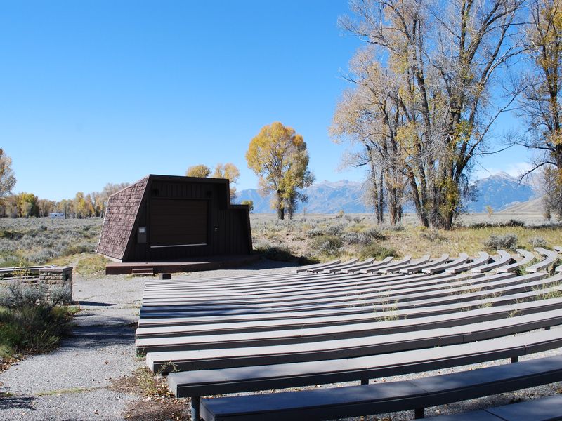 Gros Ventre Campground, meaning 'big belly' in French, is Grand Teton National Park's largest campground, featuring 279 individual sites, 39 electric hookup sites, and 4 group sites. Surrounded by cottonwood trees and sagebrush, the campground sits along the Gros Ventre River with stunning views of Blacktail Butte and the Teton Mountains. The riverside location provides prime wildlife watching opportunities, as bison, moose, mule deer, and a variety of birds frequently visit the area. All campsites include a picnic table, fire grate, and bear box, with nearby flush toilets and cold running water. The campground accommodates both tent campers and RVs up to 45 feet in length, with some sites offering electric hookups. Two dump stations are available with limited hours. The Gros Ventre River offers excellent fly fishing for cutthroat trout, brook trout, and whitefish, all within walking distance from any campsite. The area offers outstanding recreation opportunities including the 7.3-mile Blacktail Butte Trail with wildflowers and panoramic mountain views, sport climbing on Blacktail Butte's limestone walls, and easy access to iconic sites like Mormon Row. The campground is the closest park campground to Jackson, just 7 miles south, providing convenient access to town amenities while maintaining a tranquil natural setting.