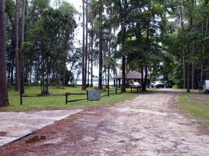 Group Landing is a secluded group camping facility on the shore of Ocean Pond within the Olustee Experimental Forest area of Osceola National Forest. This reservation-only site offers a flexible space for family camping trips, company picnics, and small group gatherings, accommodating up to 50 overnight guests or 75 for day use. The facility includes four campsites with water and electric hookups, an accessible bathhouse with hot showers and flush toilets, potable water, bear-proof garbage cans, picnic tables, a large grill, and a fire pit. A large picnic shelter provides covered space for group activities. The private sand beach offers excellent swimming and easy shore launching for small boats, canoes, and kayaks. Larger craft can use the nearby boat ramp at adjacent Olustee Beach. Surrounded by tall pines and cypress draped in Spanish moss, Group Landing provides a tranquil setting for observing wildlife along Ocean Pond, a large freshwater lake known for excellent fishing and boating. The facility is located near 22 miles of the Florida National Scenic Trail and the historic Olustee Battlefield, site of the largest Civil War battle in Florida. Check-in is at 2:00 p.m. and check-out is at noon. Guests must contact the Osceola Ranger Station at +1 (386) 752-2577 between 8:00 a.m. and 4:00 p.m., Monday to Friday, to obtain the gate code prior to arrival.