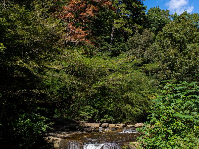 Gulpha Gorge Campground offers a serene camping experience within Hot Springs National Park, combining natural beauty with convenient access to historic attractions. Nestled along Gulpha Creek under a canopy of towering trees, the campground provides a tranquil setting just minutes from downtown Hot Springs and the famous Bathhouse Row. All 44 campsites feature full hookups including 30 and 50 amp electric, water, and sewer connections, accommodating RVs and trailers up to 60 feet as well as tents. Each site includes a picnic table, pedestal grill, and water access. The campground is fully accessible with paved surfaces throughout, sidewalks connecting campsites to amenities, and one ADA-compliant site. Flush toilets and potable water are available year-round, though there are no shower facilities. The campground serves as an excellent base for exploring Hot Springs National Park's 26 miles of trails, with direct trailhead access to Hot Springs Mountain and Bathhouse Row. Gulpha Creek runs adjacent to the campground, perfect for wading and relaxing. The facility includes an amphitheater, dump station, trash collection, and on-site hosts. This popular destination fills quickly even in fall and winter, making advance reservations highly recommended.