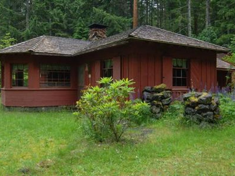 The Hamma Hamma Cabin is a historic guard station built from 1936-1937 by the Civilian Conservation Corps and nominated to the National Register of Historic Places for its exceptional craftsmanship and architecture. Originally used as an administrative site for Forest Service fire and trail crews, the cabin now offers guests a tranquil retreat in Olympic National Forest. The single-story cabin accommodates up to 6 guests with two bedrooms (one double bed, one set of bunk beds) and a living room with a futon that converts to a bed. The hexagonal bay window overlooks the Hamma Hamma River drainage. The kitchen is equipped with a propane stove, table and chairs, dishes, pots, and utensils. The cabin features propane heat and lighting, a flush toilet (indoor plumbing for toilet only), and an outdoor picnic table and fire ring. Situated on a landscaped clearing surrounded by old-growth Douglas firs, dogwoods, and rhododendrons, the cabin sits near the scenic Hamma Hamma River. The area provides access to The Brothers Wilderness, Mt. Skokomish Wilderness, Hood Canal, and Olympic National Park. Guests can explore the quarter-mile Living Legacy Interpretive Trail from the cabin, hike to Lena Lake (3.5 miles), or fish the Hamma Hamma River for salmon and steelhead. The river's name comes from a Twana village called Hab'hab, referring to reeds growing along the riverbanks.