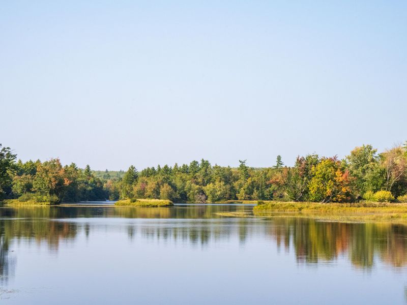 Haskell Deadwater Campsite is a backcountry primitive camping location within Katahdin Woods and Waters National Monument, situated along the scenic banks of Haskell Deadwater and the Haskell Rock Pitch Portage on the East Branch Penobscot River. The site is accessible via multiple routes: hiking or biking 2 miles from Haskell Gate along the International Appalachian Trail, or by paddling the East Branch. This is a single-site primitive campsite with basic amenities including vault toilets and food storage lockers. No potable water is available on-site, so visitors must bring their own water supply. The site has no road vehicle access, making it a true backcountry experience for those seeking solitude in the northern Maine wilderness. Campfires require a valid Maine Forest Service campfire permit and are only allowed in designated locations. Camp stoves are permitted. The monument is open year-round, offering opportunities for summer paddling and hiking as well as winter activities like snowshoeing and cross-country skiing. Due to its remote location and primitive nature, visitors should be prepared for self-sufficient camping and practice Leave No Trace principles.