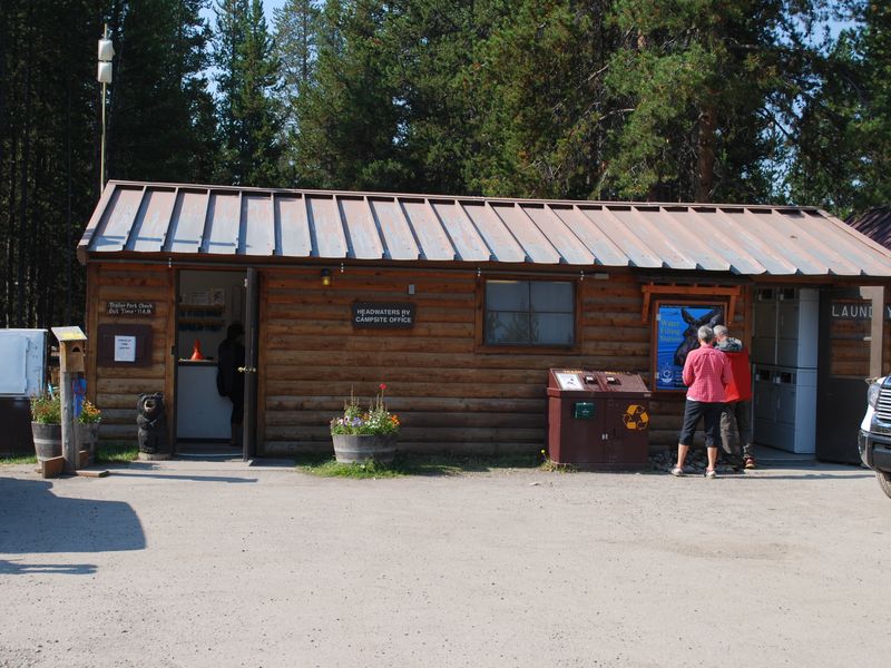 All sites include a picnic table and fire pit with metal grate. Tent and RV sites have bear-proof food storage lockers. The campground provides flush toilets, hot showers, and coin-operated laundry facilities. Firewood, food, ice, and camping supplies can be purchased at the on-site convenience store and gift shop. The main lodge offers casual dining at Sheffields Restaurant and Saloon.