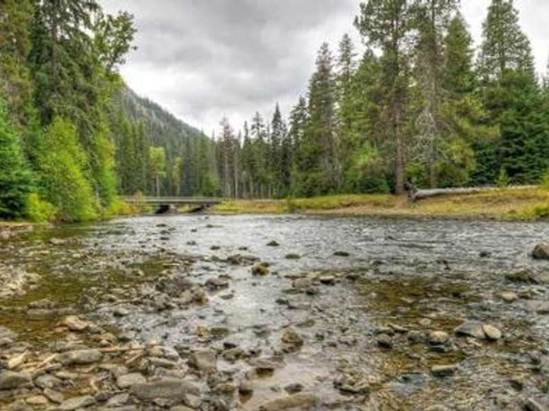 Hells Crossing Campground is situated along the American River in the Okanogan-Wenatchee National Forest, within Washington's Cascade Range. The campground features 18 sites divided into two sections: an eastern section (sites 1-10) and a western section (sites 11-18), each with its own entrance. Sites include both standard and tent-only options, with picnic tables and fire pits at each site. Drinking water is available via hand pump at the western section, and vault toilets serve the campground. The American River, accessible directly from the campground, provides opportunities for fishing, swimming in its cold mountain waters, and whitewater rafting. The surrounding Okanogan-Wenatchee National Forest offers extensive hiking opportunities, including access to the Pacific Crest Trail and the popular Boulder Cave National Recreation Trail. The forest landscape ranges from high glaciated alpine peaks along the Cascade Crest to old-growth valleys, with elevations spanning from below 1,000 feet to over 9,000 feet. Due to tight turns and trees close to the roads, the campground is not recommended for RV campers. The maximum trailer length is 20 feet. Sites are reservable through Recreation.gov during the operating season, with fees of $20 per night for single sites. The campground experiences warm, sunny summer weather and receives significant snowfall in winter, typical of the Cascade mountain environment.