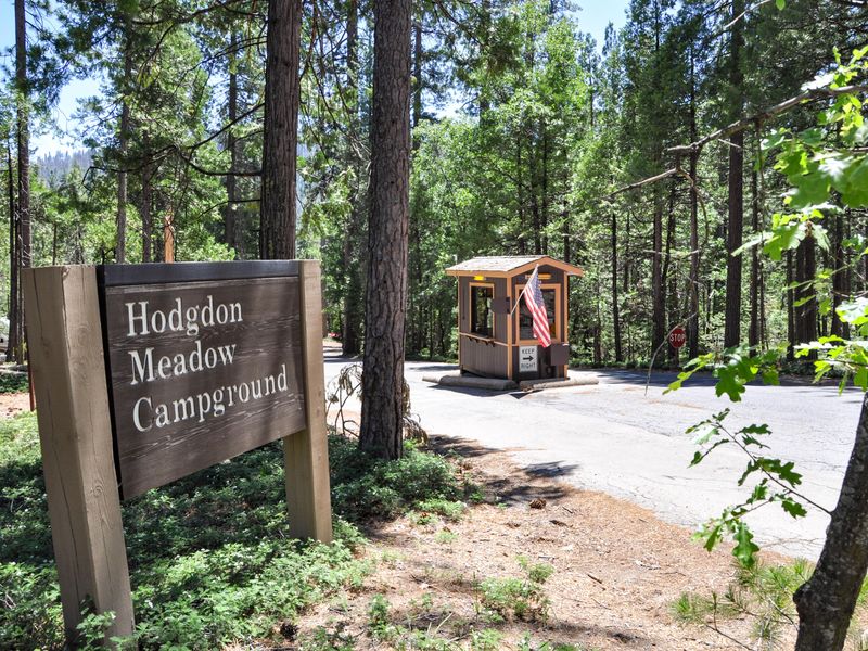From Highway 120 west, Hodgdon Meadow Campground is located immediately on the left after entering Yosemite National Park through the Big Oak Flat Entrance Station. From Yosemite Valley, take Big Oak Flat Road northwest approximately 26 miles to the park entrance; the campground is on the right just before exiting the park.