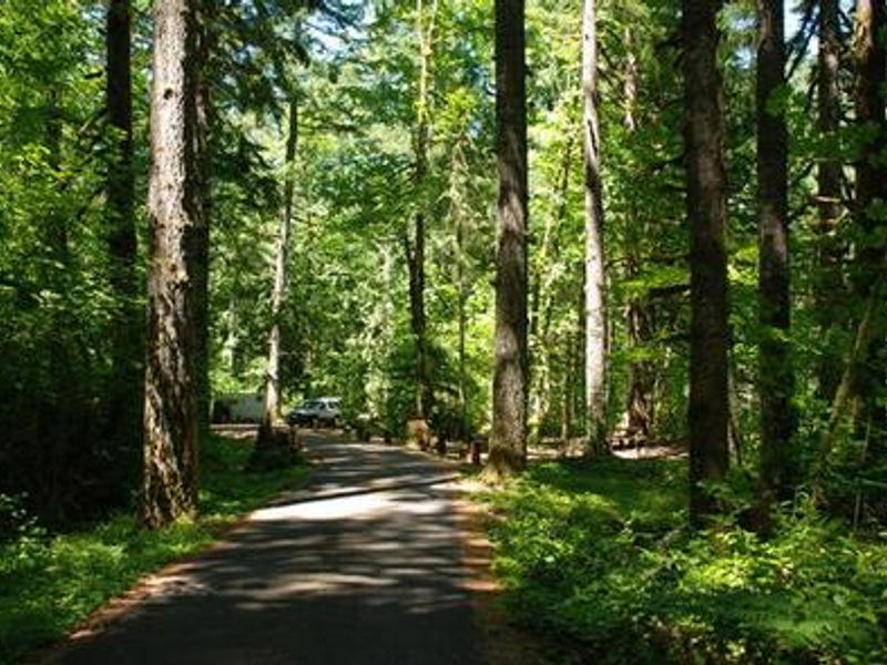 Hoover Campground sits among Douglas fir and maple trees with large ferns at 1,600 feet elevation on Detroit Lake in Willamette National Forest. The campground offers 35 campsites arranged in two loops, with 25 single sites and 10 double sites that accommodate trailers up to 30 feet. Each site includes a picnic table and fire ring. The campground provides modern amenities including flush toilets, drinking water from faucet risers, and approximately 20 extra vehicle parking spaces. The day use area features a boat launch, two courtesy docks, a separate accessible fishing pier, and two lakeside viewing platforms with about 1,000 feet of shoreline. The self-guided Hoover Nature Trail offers an accessible interpretive walk through the campground. Detroit Lake provides excellent opportunities for boating, water skiing, sailing, and fishing for catfish, rainbow trout, and Kokanee salmon. Nearby trails include Stahlman Point Trail with beautiful vistas of the lake and surrounding Cascade Mountains. A separate group site adjacent to the campground accommodates up to 70 people. Reservations can be made through Recreation.gov up to 6 months in advance for individual sites, with some first-come, first-served sites also available when open.