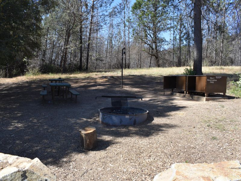 Horse Camp Primitive Campground is located in the southeast corner of Whiskeytown National Recreation Area, 15 miles west of Redding, California. This is the only campground in the park designed to accommodate camping with horses, featuring an open area that allows ease of parking for horse trailers. However, horseback riders share the campground with visitors who may not have horses. The campground features 2 primitive sites in partial shade under foothill pines. Both sites include bear-proof storage lockers, picnic tables, lamp poles, fire pits with swing-arm BBQ grills, and a shared ADA-accessible vault toilet. Each site can accommodate a maximum of 10 people and 3 vehicles, with a maximum combined vehicle and trailer length of 25 feet. Potable water is available from a spigot most of the year. Note that there are no corrals, tie posts or rails, or water troughs onsite. Whiskeytown National Recreation Area sits where the Klamath Mountains, Cascade and Coast Mountain Ranges, and Sacramento Valley meet, creating diverse wildlife and landscapes. The cool, clear waters of 3,200-acre Whiskeytown Lake provide year-round recreation opportunities including fishing, kayaking, sailing, and paddle boarding. Several trails are accessible from the campground for horseback riding, hiking, and mountain biking through the forested backcountry. Brandy Creek Beach is located 5.5 miles away and features sandy beaches, swimming areas, and seasonal amenities.