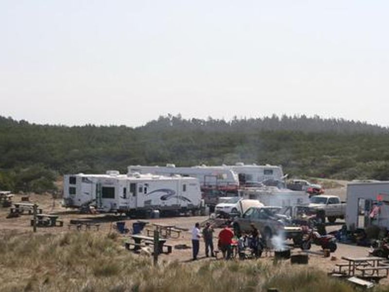 Horsfall Beach Campground occupies a spectacular location directly on the Pacific Coast within the Oregon Dunes National Recreation Area, approximately 2 miles north of North Bend. The 34-site campground is designed primarily for off-road vehicle enthusiasts, with OHV trails and open riding zones located due north and northeast of the campground. The campground features an accessible beach viewing platform providing outstanding views of the Pacific Ocean. The campground is situated on a beach surrounded by open sand dunes and extensive forested areas. Horsfall Lake, Spirit Lake, Bluebill Lake, and numerous smaller ponds lie to the east. Sites 1-23 are equipped with picnic tables and fire rings, while sites 24-34 do not have these amenities. The day-use area provides paved parking for pedestrian beach access. This is a reservation-only facility with no first-come, first-served sites available. Nearby recreation opportunities include beachcombing, sunbathing, swimming, the Bluebill Lake Trail, and the Wild Mare Horse Trail which is open to both horseback riders and hikers. The Oregon Dunes have the highest off-highway vehicle incident rates in the state, so riders should review safety guidelines before heading out. The campground is located at an elevation of 100 feet in a valley of dunes near the coast.
