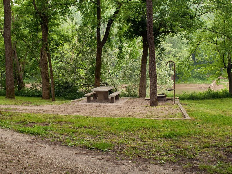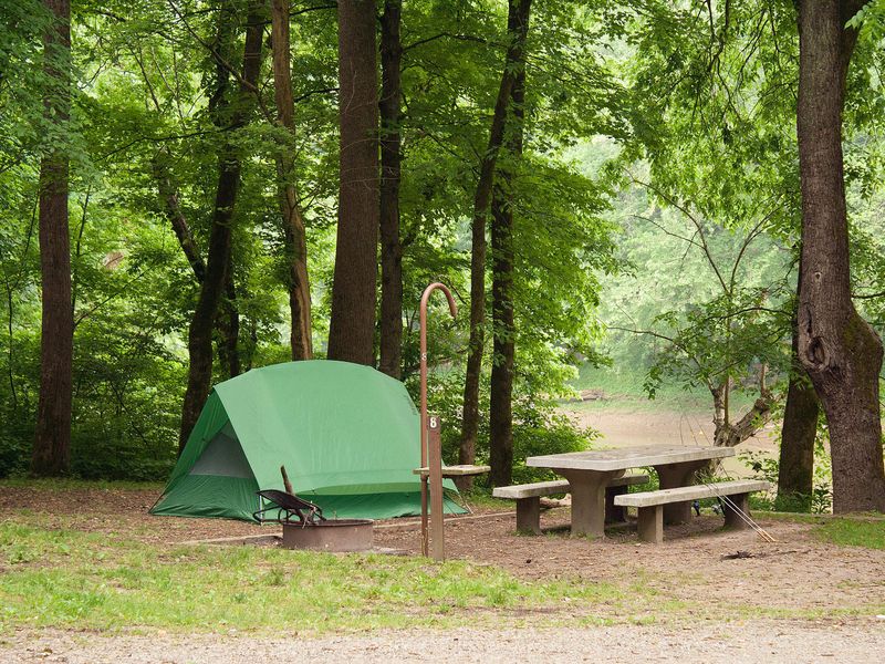 Houchin Ferry Campground sits at the former site of the historic Houchin Ferry crossing on the Green River within Mammoth Cave National Park. This primitive campground offers 12 tent-only sites surrounded by aromatic trees with beautiful riverfront views, providing a peaceful retreat for those seeking to immerse themselves in nature. Located 15 miles from the park's main Visitor Center and two miles east of Brownsville, Kentucky, the campground serves both as an overnight camping area and day-use site with public picnic facilities and boat launch access. The remote location makes this an ideal base for outdoor activities including birdwatching, fishing, and paddling along the Green River. Wildlife such as deer, turkey, and coyotes are commonly spotted. Each primitive site includes a fire ring and picnic table with drive-up access, accommodating up to 8 campers per site. The campground provides potable water and portable restrooms at the head of the camping area. From here, visitors can take a short drive to explore Mammoth Cave's extensive cave tours, miles of hiking trails, and the rolling Kentucky hillsides that define this 52,800-acre national park.