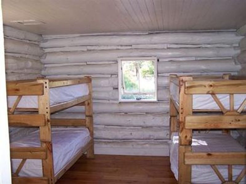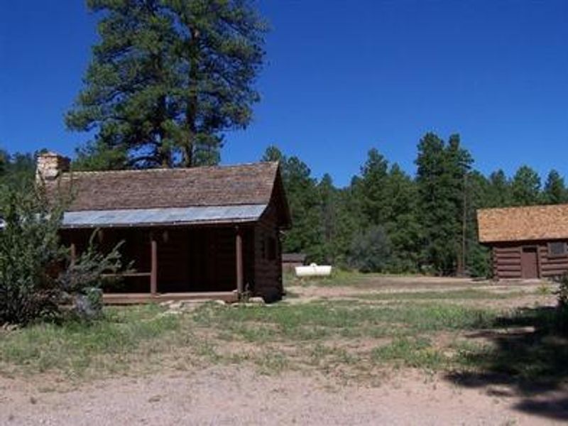 Hull Cabin is a historic rental cabin located just steps from Grand Canyon National Park on the Tusayan Ranger District of Kaibab National Forest. Built in the late 1880s with hand-hewn logs as a one-room homestead by the Hull family, it was acquired by the U.S. Forest Service in 1907 for use as a ranger station. Listed in the National Register of Historic Places in 1985, the cabin was renovated by the Forest Service in 1989-90 and is now part of Arizona's Rooms with a View cabin rental program. The cabin sits in a secluded meadow surrounded by old growth ponderosa pine trees at 6,500 feet elevation. It sleeps up to six people and includes a bedroom with two sets of twin bunk beds, a living room with a queen-sized futon, and a fully equipped kitchen with indoor plumbing (water is hauled to the site), oven, stove, refrigerator, and dishes. A separate shower house just outside contains a vault toilet and two solar shower stalls. An outdoor fire pit is available for campfires. The location provides access to miles of trails including the Arizona Trail, fishing at nearby Russell Tank during high water seasons, and wildlife viewing at Hull Tank where elk, mule deer, wild turkey, javelina, and even endangered California condors may be spotted. Grandview Lookout Tower is nearby and offers 360-degree views of the canyon and surrounding forest. Grand Canyon National Park's South Rim is just one mile away. The cabin is accessed via approximately 16 miles of graded gravel roads from Tusayan.