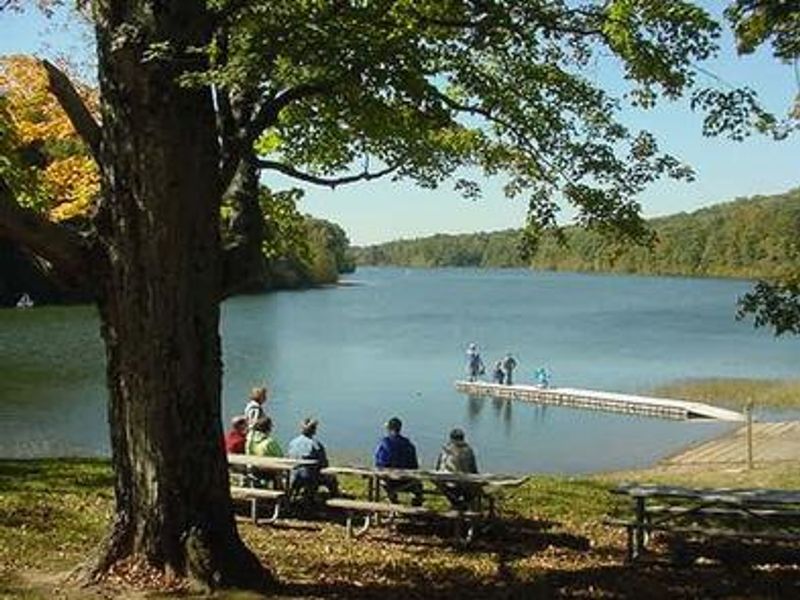 Indian-Celina Lake Recreation Area sits in the heart of the Hoosier National Forest, offering 63 individual campsites divided between two loops: North Face and South Slope. The campground provides a mix of primitive, electric, and electric/water sites, with both single and double site configurations available. During peak season, campers enjoy centralized water access, modern flush restrooms, and hot showers. Each loop includes a recharge table for electric boat motors. The recreation area features two excellent fishing lakes: Celina Lake (164 acres) and Indian Lake (152 acres), both known for pan fishing and offering catfish, largemouth bass, bluegill, and crappie. Boat ramps at each lake are open year-round, though only electric motors are permitted. An accessible fishing pier is available at Celina Lake. The Two Lakes Loop National Recreation Trail encircles both lakes, offering 16 miles of hiking through dense hardwood and pine forests, with shorter segments available for day hikes. The 1-mile Rickenbaugh Interpretive Trail provides easier access near the historic 1874 Rickenbaugh House. The campground is operated by a concessionaire under special use permit from mid-April through late October. Day-use fees apply during peak season for parking, boat ramps, trails, and the fishing pier. Quiet hours run from 10:00 PM to 6:00 AM, and campers are limited to one vehicle per site with additional vehicle fees applicable.