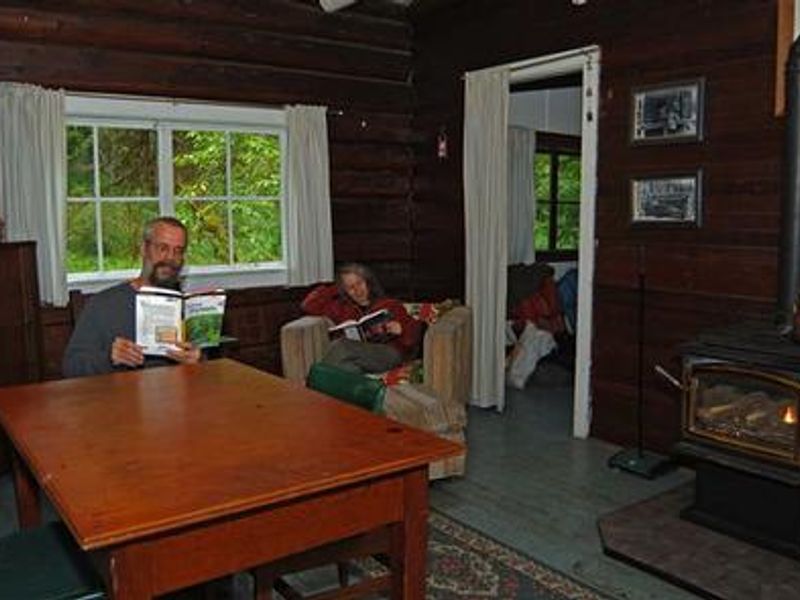 Interrorem Cabin offers guests a unique glimpse into Olympic National Forest history while providing comfortable year-round lodging. Built in 1907 by Ranger Emery J. Finch for his bride Mabel, this charming one-story peeled-log cabin served as the first administrative site in what was then the Olympic National Forest. Over its century-plus history, it hosted government programs during the 1930s-40s, served as a fireguard station until 1986, and was used by Forest Service volunteers until 1994. The cabin is equipped with propane heating, cooking range, and lights, making it cozy during winter months. Inside you'll find a kitchen with dining table and chairs, a living room with futon couch/bed, and a bedroom with twin bunk beds. An outdoor vault toilet, fire ring, and picnic table complete the amenities. Guests must bring their own water and supplies. Located in the Duckabush Recreation Area beneath magnificent stands of Big Leaf Maple trees, the cabin sits near the cold, clear Duckabush River with access to The Brothers Wilderness and Olympic National Park. A nature trail behind the cabin features interpretive signs and historic photos describing the Finch family's life. The nearby Ranger Hole Trail leads to Mr. Finch's favorite fishing spot on the river. The surrounding dense forest of western hemlock, western red cedar, and Douglas fir provides habitat for elk, black-tailed deer, black bears, and mountain lions.