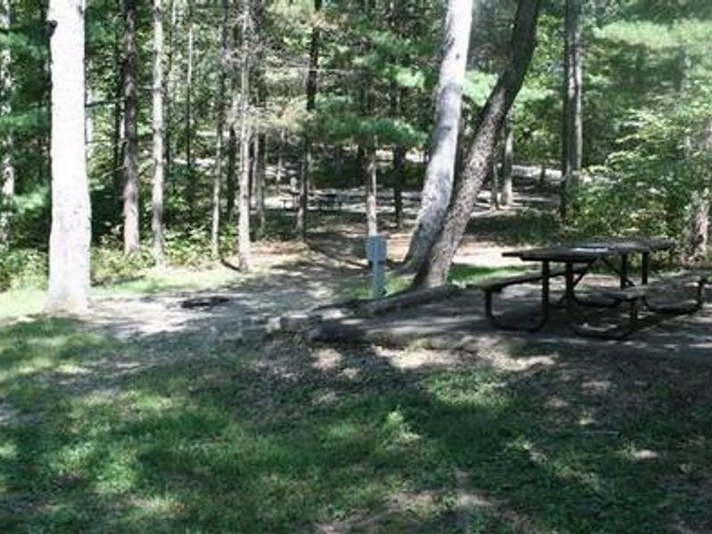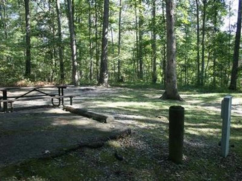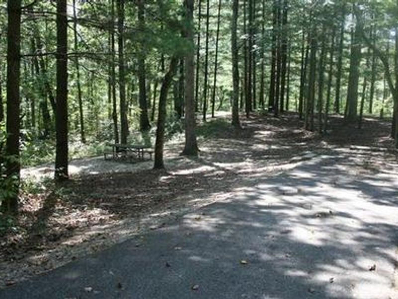 Iron Ridge Campground is situated on a wooded ridge above 143-acre Lake Vesuvius in the Vesuvius Recreation Area of Wayne National Forest's Ironton Unit. The campground features 32 campsites consisting of 21 RV sites and 11 tent sites, with water available at all sites and electric hookups at sites 1-22. The campground can accommodate large RVs and provides flush toilets for camper convenience. The recreation area offers extensive trail access, with over 40 miles of trails beginning at or near the campground. The Whiskey Run Trail connects the campground to the Lake Shore Trail, an 8-mile loop around Lake Vesuvius. Other trails lead to Rock House Cave, a tunnel-like sandstone cave that was historically used by Native Americans for shelter. The Lake Vesuvius Horse Trail System provides 46.66 miles of horseback riding trails. Lake Vesuvius typically offers boating, fishing, and swimming opportunities, with anglers catching bass, catfish, crappie, and bluegill. The surrounding forest consists of mature eastern hardwoods, creating a scenic backdrop in the rolling hills of southeastern Ohio. The campground is located less than 10 miles from Ironton, making it accessible while maintaining a remote forest atmosphere.