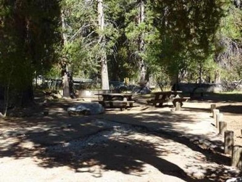 Jackass Meadow Campground is situated below Florence Lake on the San Joaquin River in a scenic high Sierra setting surrounded by the craggy peaks of the John Muir Wilderness. The campground sits in a stand of aspen and lodgepole pine with the South Fork of the San Joaquin running through the property. Each campsite has a table, fire ring, grill, and bear-proof food locker. The campground is located near several Native American archaeological sites and features a 0.7-mile accessible hiking trail. Most recreation opportunities center around Florence Lake, located half a mile away, where the Florence Lake Store offers boat rentals, supplies, groceries, and ferry service. A popular activity is taking the ferry from Florence Lake to access the John Muir Trail, which is part of the Pacific Crest Trail. Access is via Kaiser Pass Road, which includes both paved and dirt sections. The road is not recommended for large RVs, with a maximum vehicle length of 25 feet. Campers should bring mosquito repellent and note that campfire wood can be purchased from the campground host.