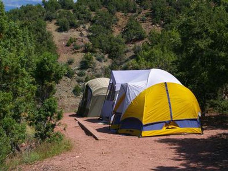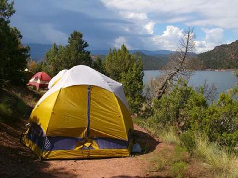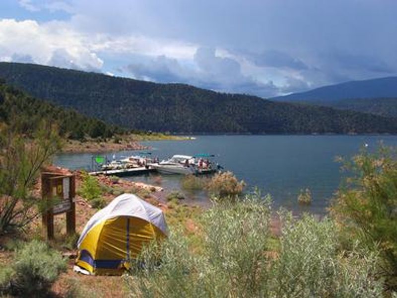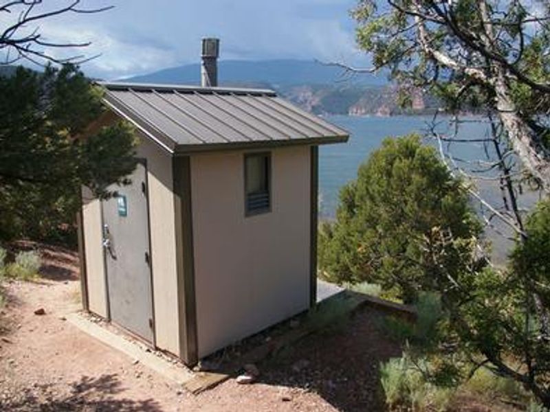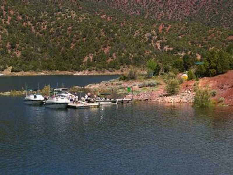 Jarvies Boat-in Group Campground is located on beautiful Flaming Gorge Reservoir in Jarvies Canyon at an elevation of 6,040 feet within the Flaming Gorge National Recreation Area on Ashley National Forest. This boat-access only facility is reached via a 20-minute boat ride from Cedar Springs Marina or Mustang Ridge Marina. The campground sits among dense stands of juniper and pinyon pine on a hillside overlooking the reservoir, offering expansive views of the water and surrounding red cliffs. The spacious group site accommodates up to 40 people and features a large picnic shelter, picnic tables, two campfire rings, two grills, and three tent pads. A private dock is located down a short hill on the shoreline, though the path does not meet accessibility standards. One vault toilet is provided, but campers must bring their own drinking water as none is available on-site. Trash service is not provided; all garbage must be packed out. The reservoir offers excellent opportunities for boating, water skiing, fishing, and swimming. A hiking trail passes through the site for those wanting to explore the surrounding landscape. Firewood can be purchased at Cedar Springs or Deer Run. Campers with proof of registration can access showers at Deer Run and Mustang Ridge. Nearby Flaming Gorge Dam offers guided tours of the hydroelectric plant, and the Green River below provides spectacular rafting through unique geology and Native American rock art sites.