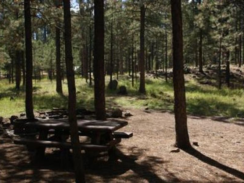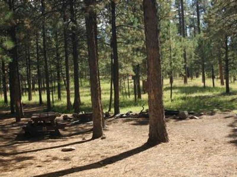 Jemez Falls Campground is located in the heart of the Jemez National Recreation Area at 7,880 feet elevation, surrounded by stunning ponderosa pine forest and open meadows. The campground features 52 campsites on paved roads with easy trailer and RV access up to 40 feet. Each site includes a picnic table and fire ring. The East Fork Jemez Wild and Scenic River flows nearby, providing excellent fishing and nature viewing opportunities. The campground offers vault toilets and conveniently located drinking water spigots throughout, with a campground host on duty during the operating season. Loop 4 is designated as a non-generator area, while loops 1-3 permit generator use from 6:00 AM to 10:00 PM. Campers should come prepared for warm days and cool nights at this elevation. Jemez Falls, the largest waterfall in the Jemez Mountains, is just a half-mile hike from the campground. The East Fork Trail offers longer hiking opportunities directly from the campground. The site is conveniently located along the Jemez Mountain Trail National Scenic Byway, with the Valles Caldera National Preserve and Bandelier National Monument a short drive away. Outdoor photography, fishing, and wildlife viewing are popular activities.