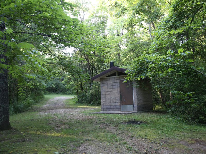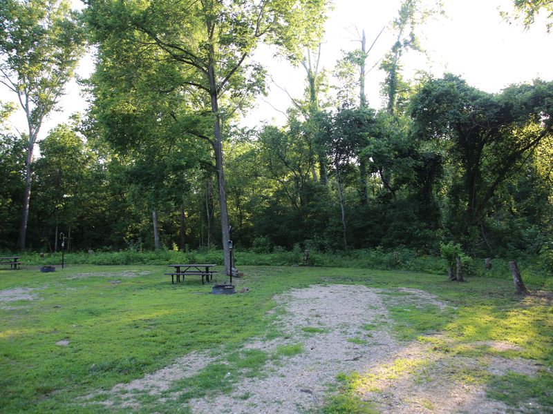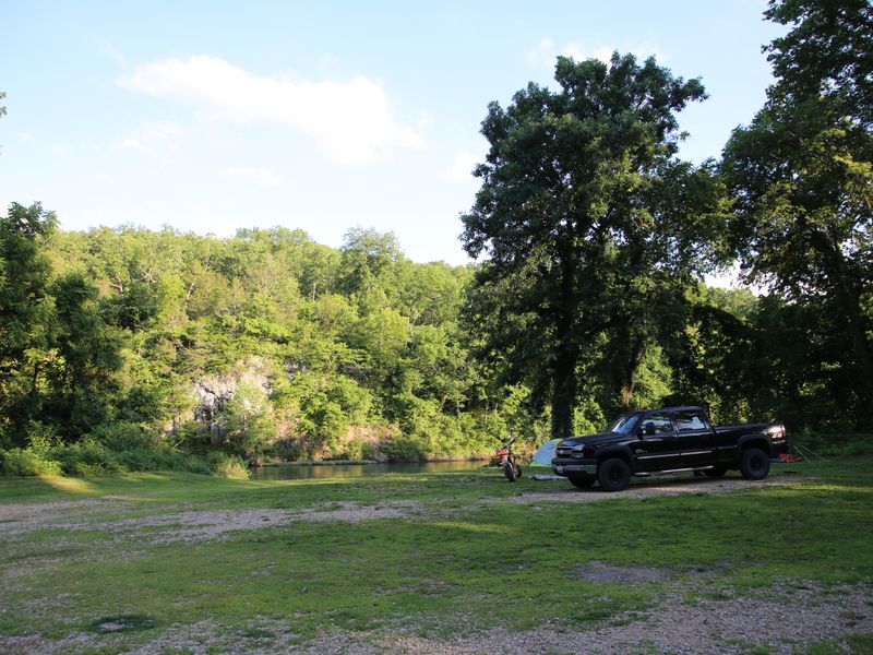 Each campsite is equipped with a picnic table, fire ring, and lantern post. Vault toilets are available year-round, but there is no potable water or showers on-site, so visitors must bring their own water supply. The campground's remote location requires driving 6 miles on gravel roads from Highway 19, starting about 5 miles north of Eminence. The route involves multiple forks and turns on County Roads 19-221 and 224.