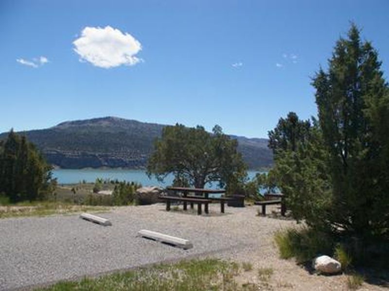 Joes Valley Reservoir Campground is nestled in a scenic high mountain valley on Utah's Wasatch Plateau at 7,000 feet elevation. The campground sits adjacent to Joes Valley Reservoir and features paved roads with accessible single and double-family campsites, many offering views of the reservoir. Juniper, pinyon pine, and sagebrush cover the surrounding landscape, while aspens and pines dot the hillsides. The reservoir is known for excellent fishing opportunities, with populations of cutthroat trout, rainbow trout, tiger muskie, and trophy splake. A boat ramp within the campground provides easy access for boating, water skiing, and canoeing. Beyond water-based recreation, the area has gained international recognition for world-class bouldering in nearby Straight and Cottonwood Canyons. The campground also serves as a gateway to the 370-mile Arapeen OHV Trail System, which features well-maintained trails suitable for all skill levels with 66 and 55-inch designated routes. Additional recreational opportunities include horseback riding, mountain biking, and hiking throughout the surrounding Manti-La Sal National Forest. Popular mountain fisheries at Grassy Lake, Pete's Hole, and Potters Ponds are all within 10 miles. The campground provides vault toilets, drinking water, and each site includes a fire pit and table.