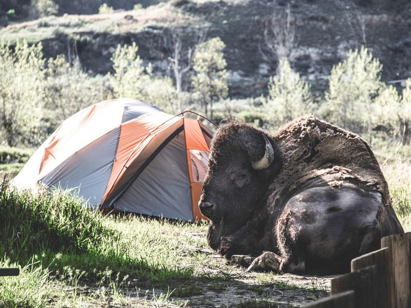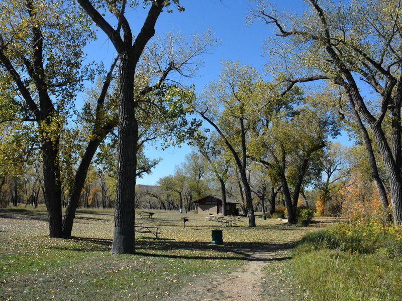 Juniper Campground Group Site serves as the North Unit's only group camping option in Theodore Roosevelt National Park, located along the Little Missouri River approximately five miles from the Highway 85 entrance. The site can accommodate groups of 7 to 60 people with a maximum of 20 passenger vehicles. Set within the North Dakota badlands where Theodore Roosevelt once ranched and hunted in the 1880s, the campground provides direct access to two significant trails: the challenging 17.7-mile Achenbach Trail that traverses river bottomland, badlands hills, and includes a river crossing, and the 1.1-mile Little Mo nature trail that winds through river woodlands. The group site is moderately forested with cottonwood trees that turn golden in fall, though most areas receive partial to full sun. The Little Missouri River offers respite during hot summer days. Facilities include vault toilets, picnic tables, and seasonal drinking water from May through October. A dump station operates during the camping season, but there are no hookups for water, sewer, or electricity. The site accommodates tents, trailers, and RVs, though all vehicles must remain on designated roadways and pads. Watford City, located 15 miles north, provides shopping, restaurants, and amenities. The adjacent Little Missouri National Grassland, the nation's largest at over one million acres, offers additional recreation opportunities. Campers should be prepared for variable weather: summer temperatures range from 80 to 100 degrees with occasional thunderstorms and persistent wind, while winters bring temperatures well below zero.