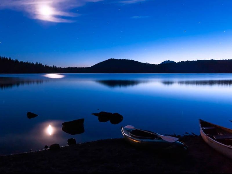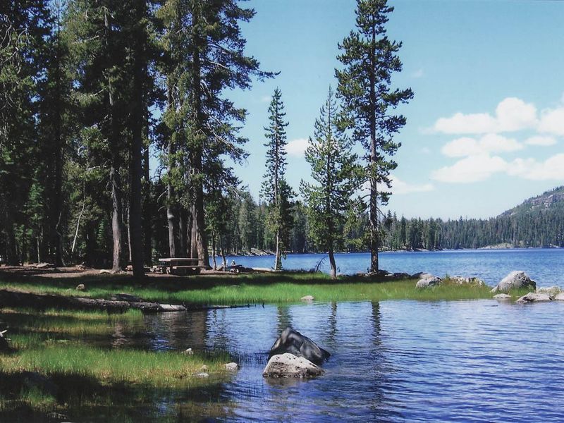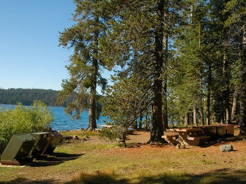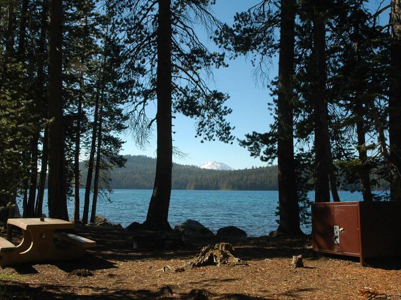 Juniper Lake Group Campground is a remote, rustic facility located at 6,800 feet elevation on the eastern shore of Juniper Lake in the southeastern corner of Lassen Volcanic National Park. The campground offers spectacular views of Lassen Peak, the park's largest volcano at 10,457 feet, and provides access to some of the park's most pristine backcountry. The facility features two reservation-only group sites, each accommodating 10-15 people with three picnic tables, three fire grates, and three metal food lockers. Access requires navigating 13 miles from Chester, with the last 6 miles on narrow, rough, dusty dirt road unsuitable for RVs, trailers, or large vehicles. The campground serves as an excellent base for exploring the park's interior, with trailheads for Horseshoe Lake, Snag Lake, and the Mount Harkness Trail leading to a historic fire tower still in use today. Juniper Lake itself is a popular destination for non-motorized boating, swimming, canoeing, and kayaking. The area sits at the junction of the Cascade Mountains, Sierra Nevada, and Great Basin, creating diverse habitats supporting over 700 flowering plant species and 250 vertebrate species. The park's volcanic features, including 300 active volcanic domes and numerous hydrothermal features, provide a dramatic backdrop to this wilderness camping experience.
