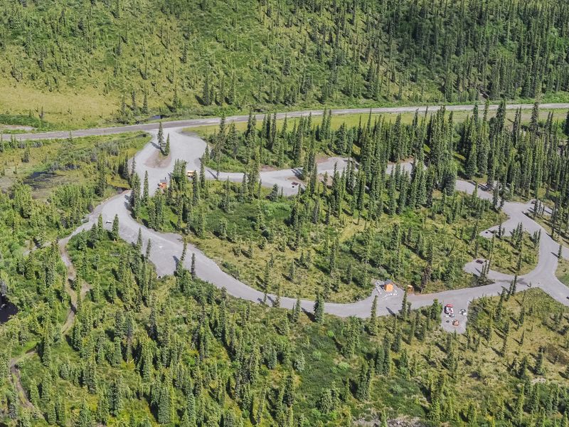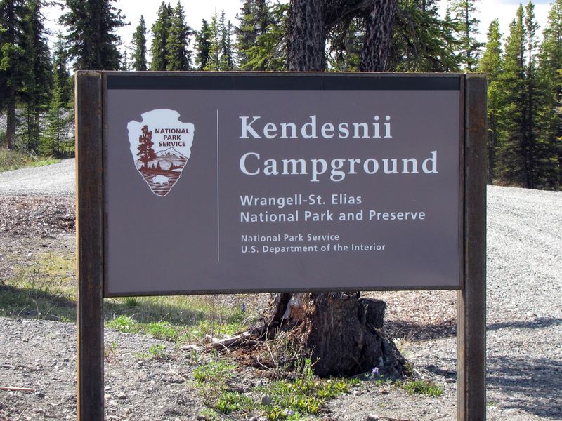Located at 3,000 feet elevation on the Nabesna Road, Kendesnii Campground is the only developed National Park Service campground in Wrangell-St. Elias National Park. This free camping area features 10 designated sites, each equipped with a picnic table and fire ring, plus two vault toilets serving the campground. The sites can accommodate small to medium RVs up to 25 feet in length. The campground operates year-round on a first-come, first-served basis with no reservations required or accepted. However, winter access is limited as the road is not plowed, making campsites potentially inaccessible during snow season. Summer visitors with regular passenger cars can typically reach the campground, though heavy rain or snow at any time of year may make the dirt and gravel road impassable. The campground enforces a seven-day camping limit per month, and sites cannot be left unattended for more than 24 hours. Visitors should note that no potable water is available at the campground; the nearest drinking water is at the Wrangell-St. Elias Visitor Center or Slana Ranger Station. All food and scented items must be stored in hard-sided vehicles at all times when not in immediate use due to wildlife. The campground provides access to hiking trails and fishing opportunities in the surrounding wilderness.
