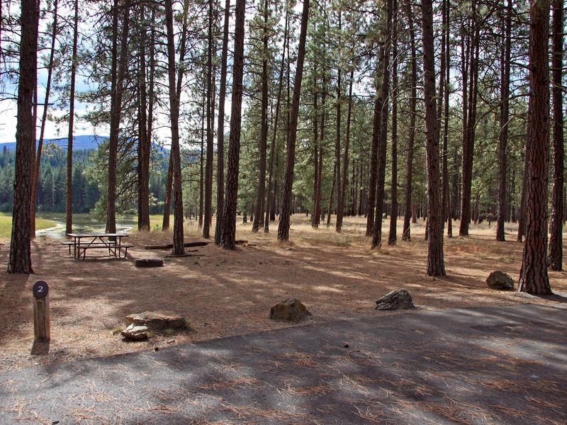 From Spokane, travel 80 miles north on Highway 395 through the town of Kettle Falls. Continue across the bridge to the west side of the Columbia River. After crossing the bridge, travel north another 6.7 miles and turn right onto Waterview Drive. The campground is 0.4 miles ahead.