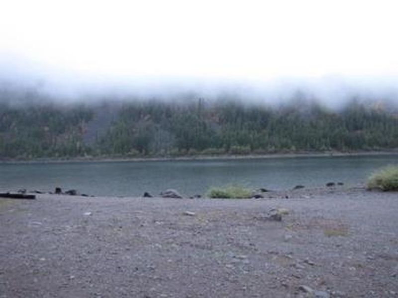 Kinnikinnick Campground is located on the southern edge of Laurance Lake, north of Mount Hood near Parkdale, Oregon. This hidden gem in Mount Hood National Forest offers 26 walk-in campsites with views of the lake and surrounding rock and hill formations. The campground provides a secluded, off-the-grid experience with regular bald eagle sightings and excellent lake access. All sites are walk-in only and feature picnic tables and fire pits. Laurance Lake permits all non-motorized water sports including kayaking, canoeing, and stand-up paddleboarding, with a boat ramp available near the campground. The lake also provides fishing opportunities. Note that the access road includes a 16 to 18 inch ford crossing at Elliot Creek that is approximately 12 feet wide, and the road conditions are rough and not trailer-friendly. The campground is approximately 30 minutes from nearby ski resorts that offer summer hiking. Vault toilets are available, but there is no potable water on site and no cell service. The facility is managed through Recreation.gov reservations during the operating season.