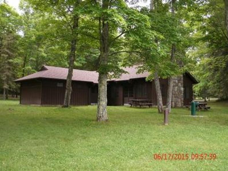 The Lake Ottawa Pavilion sits in a beautiful north woods setting along the shore of Lake Ottawa within the Ottawa National Forest. Built by the Civilian Conservation Corps in the late 1930s, this historic pavilion provides a large indoor gathering area complete with picnic tables, limited seating, and a fireplace. The facility includes co-located flush toilets and change rooms. Surrounding the pavilion is a large outdoor picnic area with water bubblers, picnic tables, grills, a sandy swimming beach, and an athletic field. Lake Ottawa is a clear, deep cold-water lake with a natural sandy bottom, almost completely surrounded by National Forest System land. The pavilion is just a short walk from the Lake Ottawa campground and the trailhead for the Ge Che hiking trail, which provides approximately nine miles of hiking opportunities through the campground, day-use area, and surrounding northern hardwood forest. The boat landing offers ample parking and provides anglers access to fish for trout, bass, walleye, and pan-fish. This day-use area is open from 6 a.m. to 10 p.m. daily and is available for group reservations.