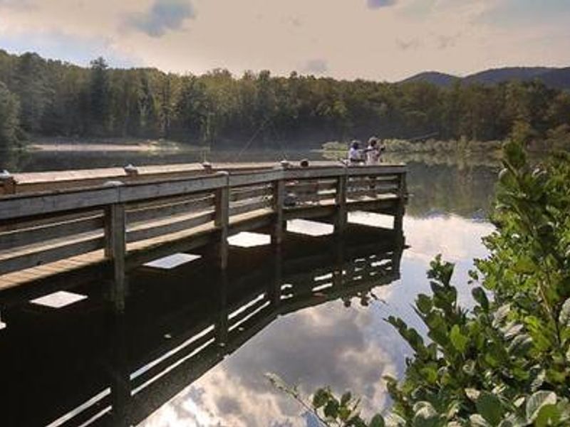 Lake Powhatan Campground is situated in a heavily wooded area on the banks of Lake Powhatan in the Pisgah National Forest, at an elevation of 2,200 feet in the Appalachian Mountains of western North Carolina. The campground offers standard, electric, and full hookup RV sites, as well as 12 glamping tents for those seeking a more comfortable camping experience. All sites include picnic tables, tent pads, lantern hooks, and campfire rings with grills. The campground features a popular sandy swimming beach on Lake Powhatan, which is open Memorial Day through Labor Day from 10 a.m. to 8 p.m. Personal watercraft are strictly prohibited on the lake to protect the riparian ecosystem. The calm lake waters provide excellent trout fishing opportunities, and the nearby French Broad River offers additional fishing access. The campground borders the 6,000-acre Bent Creek Experimental Forest, which is renowned for its extensive network of mountain biking and hiking trails. Located just 10 minutes from downtown Asheville, Lake Powhatan provides convenient access to urban amenities while maintaining a peaceful forest setting. Nearby attractions include the Blue Ridge Parkway, Sliding Rock, Looking Glass Falls, the NC Arboretum, and the Biltmore Estate. The campground is managed by Naventure and operates year-round, making it an ideal base camp for exploring western North Carolina's natural and cultural destinations.