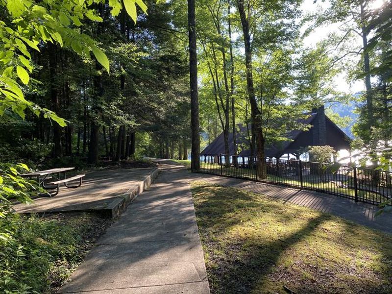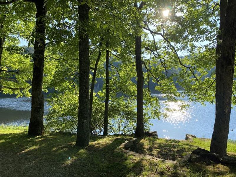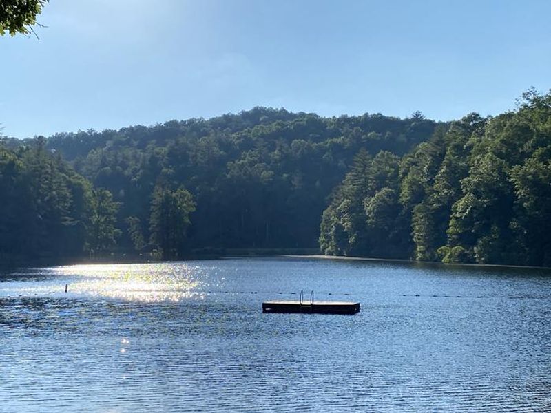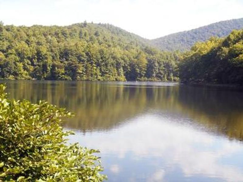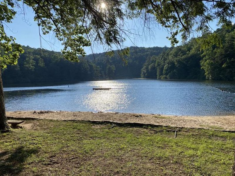 Situated high in a mountain valley within Chattahoochee-Oconee National Forest, approximately 80 miles from Atlanta, Lake Winfield Scott Recreation Area offers year-round recreation opportunities centered around the scenic 18-acre lake. The lake, which forms the headwaters of Cooper Creek, was built by the Civilian Conservation Corps in the 1930s and is surrounded by a diverse forest inhabited by deer, bear, wild turkey, grouse, and songbirds. The recreation area features 31 campsites configured in North and South loops for tent or RV camping. Four sites offer water and electric hookups. The North Loop operates year-round on a first-come, first-served basis, while the South Loop operates seasonally with reservations available through Recreation.gov. Additionally, a rental cabin accommodates up to 12 people with electricity, water, kitchen facilities, and a wood stove. The campground provides showers, flush and vault toilets, grills, picnic tables, and lantern posts, though there is no dump station on-site. Recreation opportunities include swimming at the designated beach area with bathhouse and playground, boating with hand-powered or electric motor craft only, and fishing for catfish, trout, perch, brim, and bass from the accessible fishing dock or boat. Three hiking trails offer options from easy to moderate difficulty, including the 0.4-mile lakeshore trail and two trails that connect to the Appalachian Trail. The recreation area also features reservable picnic pavilions and day-use facilities.