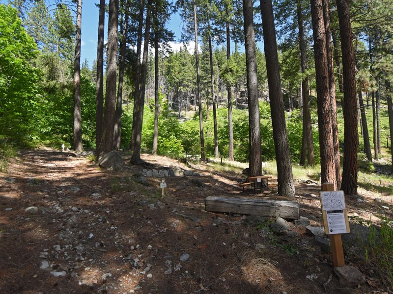 There are no roads connecting Stehekin to the rest of Washington. Access is only via foot, boat, or plane. Passenger ferry service operates on Lake Chelan, or visitors may bring their own boat and moor at public docks with a federal dock permit. From Stehekin Landing, the campground is a five-minute walk southeast along a hilly gravel and dirt trail.