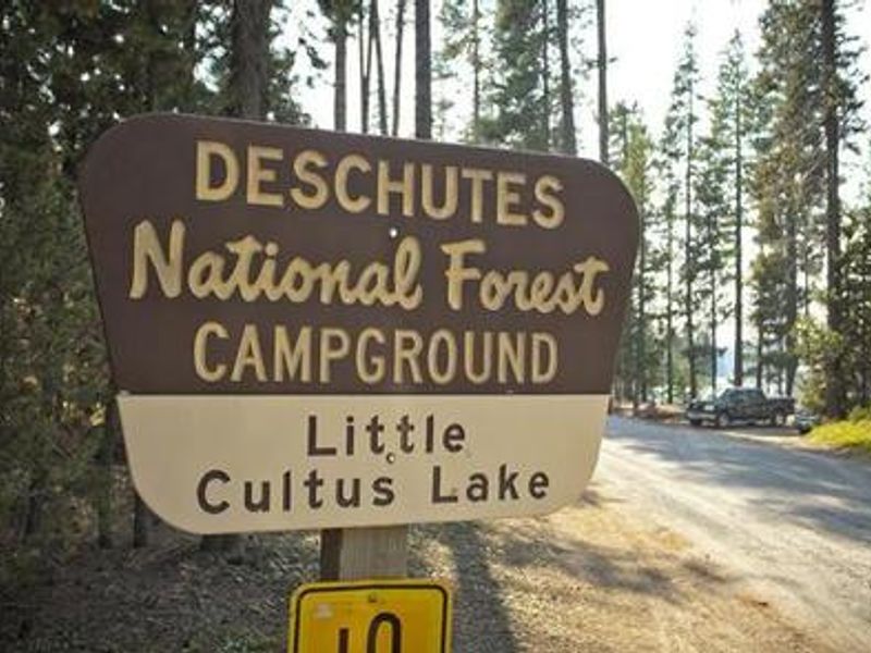 Little Cultus Lake Campground is located on Little Cultus Lake just south of Cultus Lake proper in the Deschutes National Forest. The lake spans 175 acres and features a gentle sloping bottom that makes it ideal for wading and swimming, particularly for families. Rainbow and brook trout fishing is available throughout the season. The campground offers 20 campsites that can accommodate RVs, trailers, and tents with a maximum site spur length of 40 feet. All sites include picnic tables and fire pits. Amenities include vault toilets, hand-pumped drinking water (available May through September or until closing), and a paved boat launch. Both motorized and non-motorized boats are permitted on the lake. Nearby hiking and mountain biking trails offer access to the Three Sisters Wilderness. The campground is located along the Cascade Lakes National Scenic Byway, approximately 46 miles southwest of Bend via Highway 46. The setting features a heavily forested area typical of the Central Oregon Cascades, providing moderate shade and privacy at most sites.