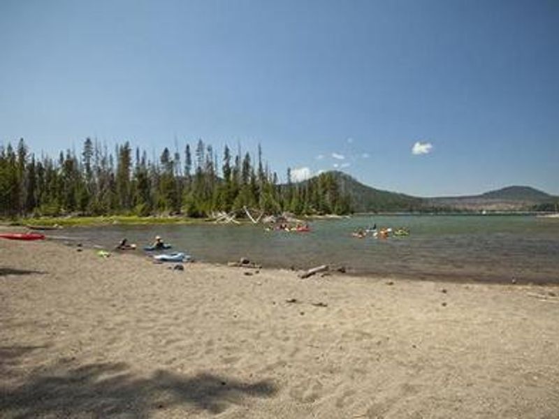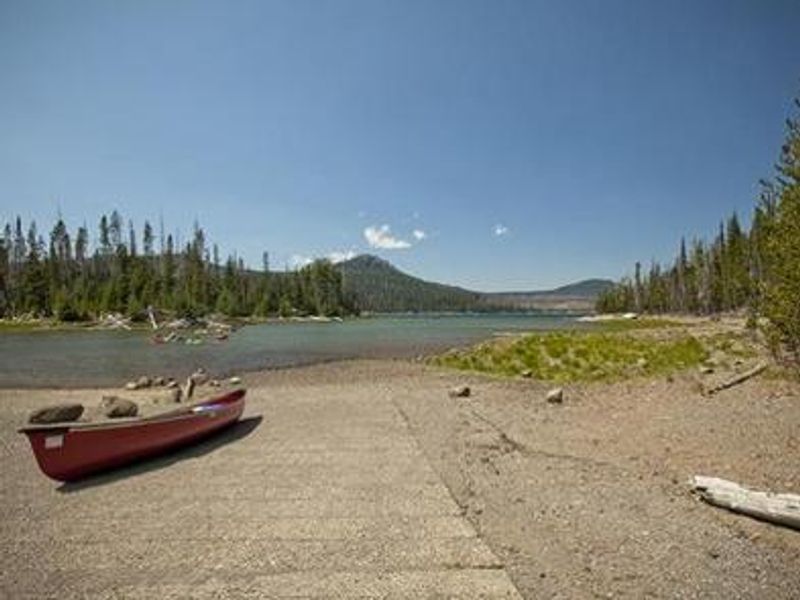 Little Fawn Campground sits on the southeastern shores of Elk Lake in Deschutes National Forest, approximately 37 miles southwest of Bend. The campground offers direct lake access with a boat ramp, beach area, and opportunities for boating, windsurfing, water skiing, fishing, and swimming. From various points around Elk Lake, campers can catch glimpses of South Sister and Mt. Bachelor. The campground features 32 individual campsites with a maximum spur length of 30 feet. Wetlands, diverse forests, and rocky slopes near the campground provide habitat for shorebirds, porcupine, deer, bats, and occasional black bears. The site is located along the Cascade Lakes Scenic Byway, which climbs through the Cascades on a 66-mile drive weaving past snow-capped peaks and alpine lakes. Potable water is available from hand pumps during the operating season, typically from late May through September. Vault toilets are provided. The campground operates on a reservation system through Recreation.gov, with some sites available on a first-come, first-served basis.