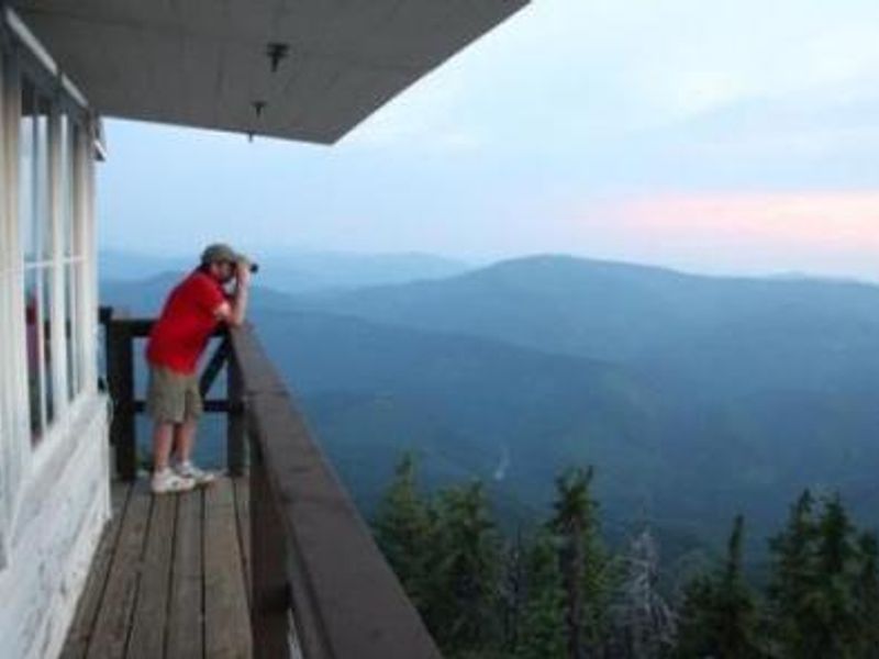 From I-90, take Exit #43 (Kingston) and drive 24 miles north on Forest Highway 9 to Prichard junction. Continue on Forest Road 208 for about 5 miles to Forest Road 602 (on the right just past Shoshone Base Camp). Drive about 9 miles to the lookout at the end of the road. High clearance vehicles and good tires are strongly recommended.